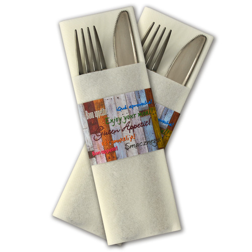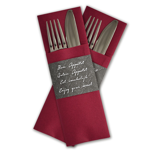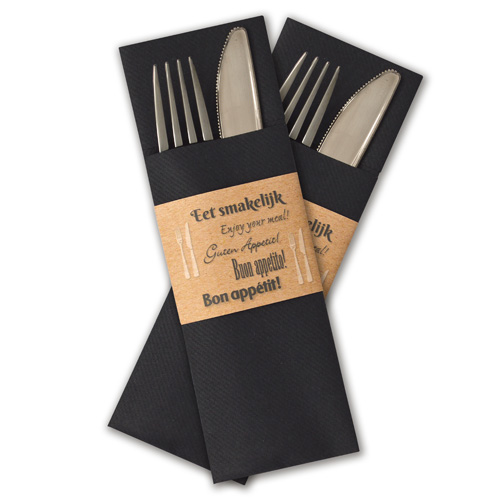 The Gastro Sleeve is a luxurious 40 x 40 cm airlaid napkin that is folded into a cutlery bag.